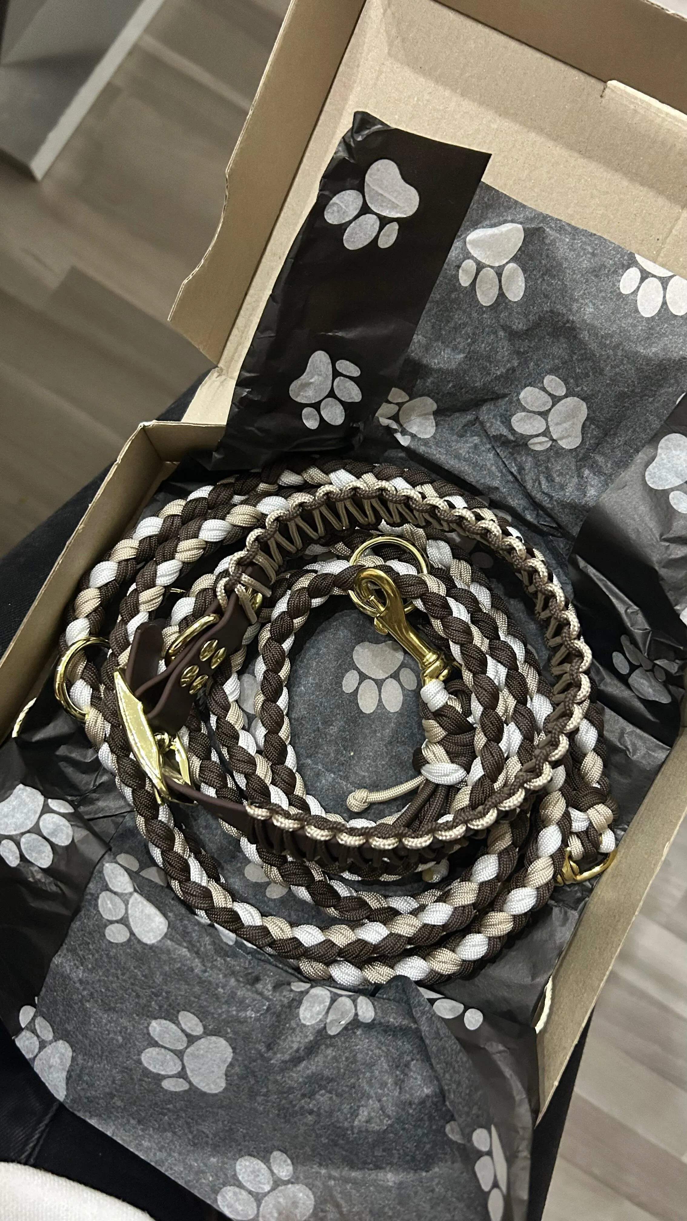 Diese hochwertige, doppeltgeflochtene Hundeleine vereint stilvolles Design, robuste Materialien und höchsten Komfort – perfekt für tägliche Spaziergänge und Abenteuer mit deinem Vierbeiner.